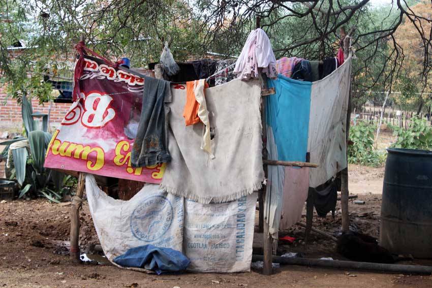 El Sandoval está habitado por unas 250 familias. Las casas están hechas con troncos de madera, cobijas y hules. Foto: Dalia Martínez SinEmbargo.