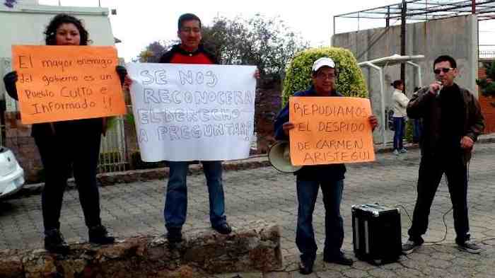 “Aristegui somos todos, no a la mordaza”, “El mayor enemigo del gobierno es un pueblo CULTO e Informado”, eran algunas de las leyendas que se podían leer en las cartulinas que pegaron en la radiodifusora.