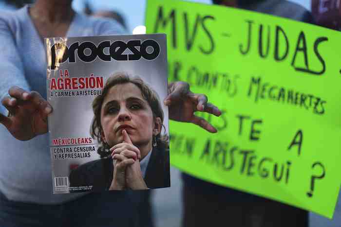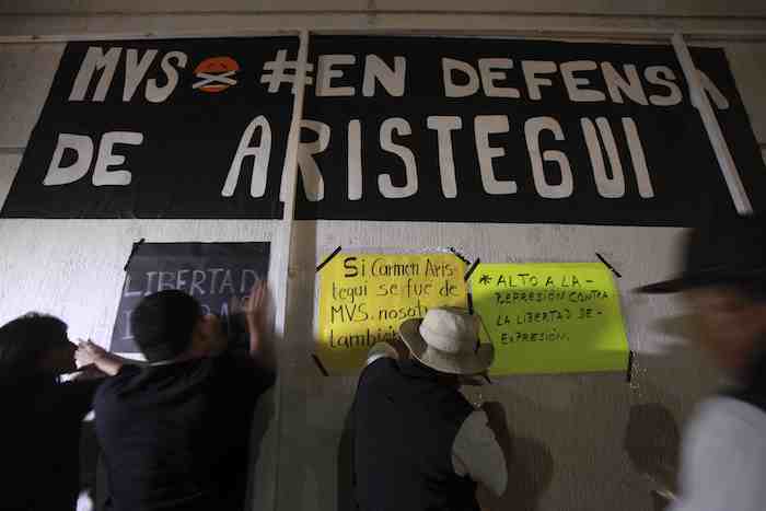 Asimismo, expresaron su rechazo mediante pancartas y acusaron que el despido de la periodista y de su equipo fue consecuencia de las investigaciones que realizaron en torno al gobierno del Presidente Enrique Peña Nieto por la adquisición de bienes inmuebles a Grupo Higa, empresa que ha sido beneficiada de licitaciones durante su mandato presidencial y también durante su administración como Gobernador del Estado de México.