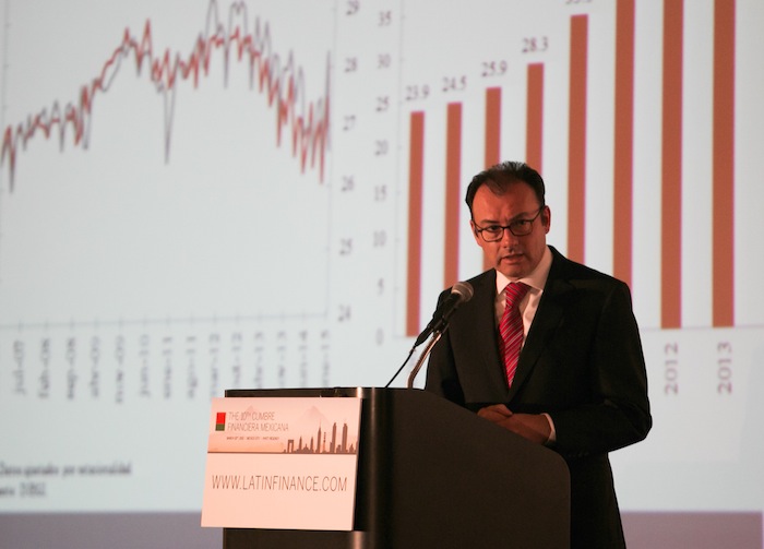 “El reto en realidad no es 2015, de hecho en 2015 tenemos el beneficio de las coberturas petroleras que contratamos el año pasado, realmente el reto importante para las finanzas públicas ocurre en 2016 y en adelante”, señaló el Secretario de Hacienda y Crédito Público durante su participación en la Cumbre Financiera organizada por LatinFinance .