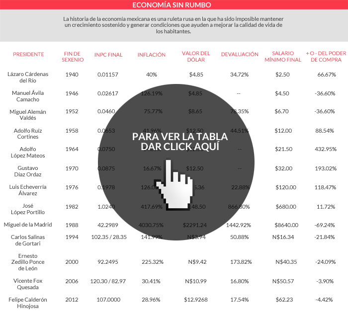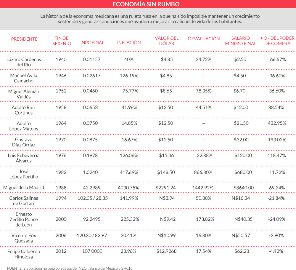Posteriormente la economía siguió en una montaña rusa, hasta 1955 cuando logró alcanzar el 11 por ciento, el más alto que ha alcanzado el país desde que se tiene registro de las mediciones. A partir de entonces, la cifra más alta se reportó en 1979, en pleno auge del petróleo y el populismo priista, cuando el PIB registró un avance de 9.7 por ciento.