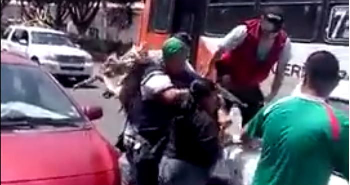 El video se puede observar cuando la mujer forcejea con los funcionarios municipales para tratar de recuperar su mercancía y estos bloquean con sus brazos a la mujer e incluso llegan a empujarla.