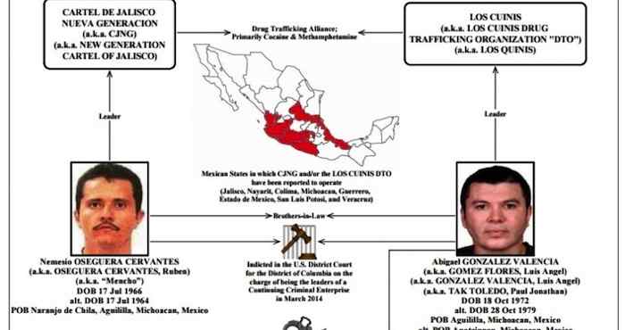 De acuerdo con el Tesoro estadounidense, CJNG surgió hace cinco años de lo que restaba del cartel Milenio, y se ha expandido desde Jalisco hasta otros estados mexicanos como Michoacán y Colima.