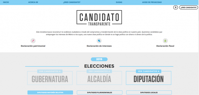 CandidatoTransparente.mx es una plataforma donde se llama a los candidatos a Gobernador, a alcaldes, y a diputados federales a que hagan públicas sus declaraciones, con el objetivo de que los ciudadanos puedan monitorear que el patrimonio del candidato, en caso de ser electo, crezca conforme a sus ingresos y los de sus familiares.