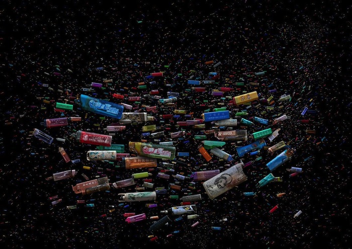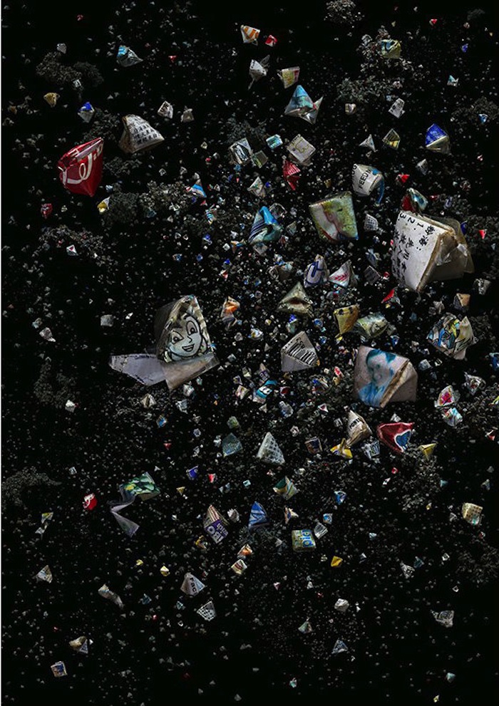 Valiéndose de este ritmo frenético, Mandy Barker fotografió el plástico de las playas de Hong Kong, realizando SOUP, una fantasmagórica serie que refleja dota de cierta belleza las huellas devastadoras del ser humano. "Quería crear la sensación de que no hay límites", dice la artista británica, "porque el plástico simplemente sigue y sigue".