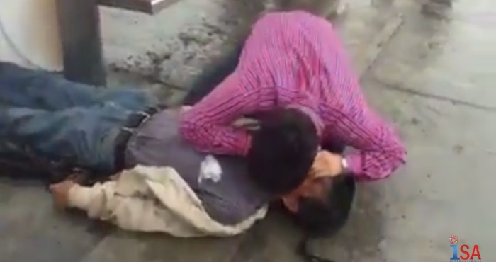 Finalmente, muestra el video, un elemento de la Fuerza Civil llegó a auxiliar.