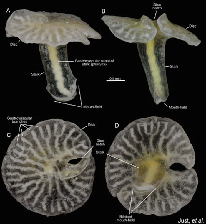 1 Dendrogramma enigmatica: Aparentemente relacionados con las medusas y los corales, son animales parecidos a las setas, miden 8 milímetros de largo y el disco superior unos 10 milímetros y se encontraron en los fondos marinos de Point Hicks (Australia).