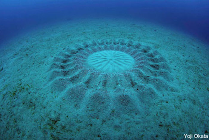 2 Torquigener albomaculosus: Unos círculos de unos dos metros de diámetro con diseños geométricos en los fondos marinos de la isla volcánica de Oshima (Pacífico), se ha descubierto que son nidos que construyen los peces machos de esta nueva especie que preparan para atraer a las hembras y posiblemente evitan los ataques de depredadores.