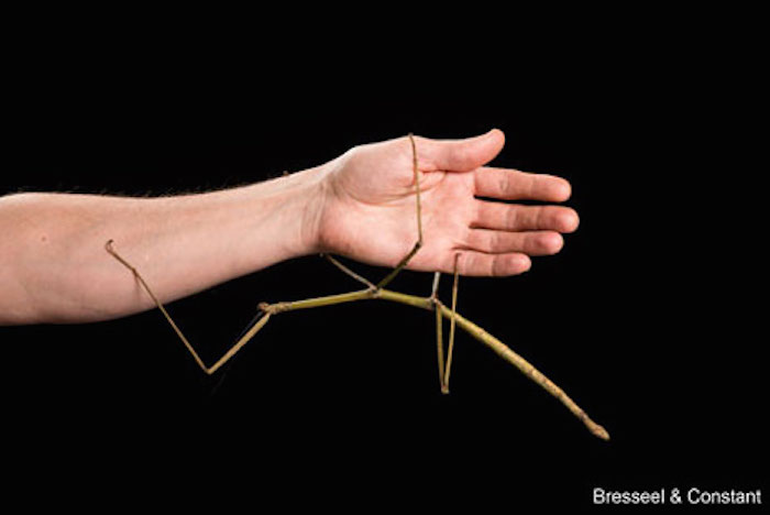 3 Phryganistria tamdaoensis: Este nuevo insecto palo tiene 23 cm de largo y es un maestro del camuflaje, hallado en el Parque Nacional de Tam Dao (Vietnam).