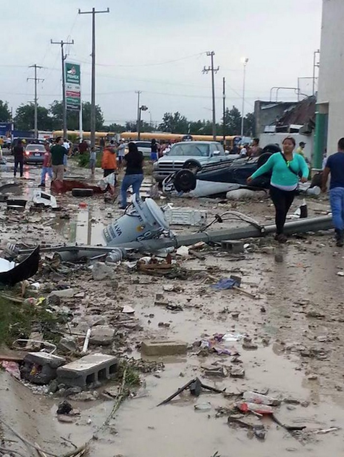 Después de las siete de la mañana, los dos funcionarios locales más importantes anunciaron por medio de Twitter que un tornado categoría 4 -preliminar– en la escala Fujita había destruido parte de Acuña. El Presidente de México Enrique Peña Nieto publicó su primer tuit sobre el tornado a las 11: 44 horas.
