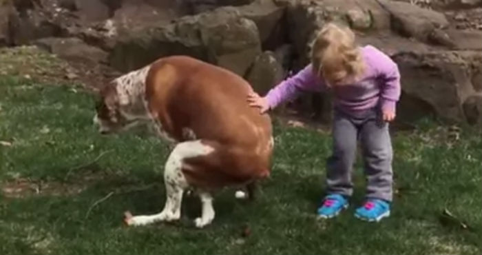 Esta adorable pequeña empatiza perfectamente con su amigo peludo, por eso, cuando lo ve haciendo popó, no duda en ir a darle unas palmaditas en el lomo y felicitarlo.