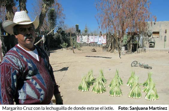 Esa familia, describe Martínez, tiene seis hijos y ocho nietos. Vive de la talla de lechuguilla, oficio que los abuelos y los padres les trasmitieron y que ahora enseñan a los hijos y nietos: “Voy ajustar 50 años y no conozco otro trabajo. ¿Qué más?: aquí no hay otra cosa”, le comenta Margarito a la reportera.