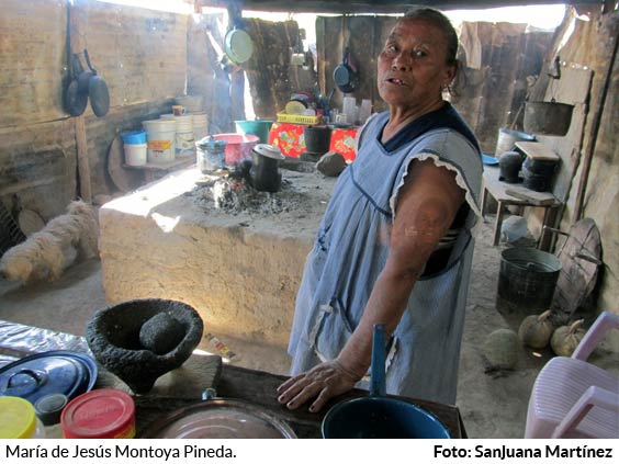 Su hija Beatriz Cruz Cruz, de 21 años, interrumpe a su padre con un bebé en los brazos: “El carro de lechuguilla lo viene uno tallando a la semana, fíjese. De aquí a que salga el ixtle y se seque. Lo compran en la cooperativa, pero ya nos dijeron que dentro de poco ya no lo van a comprar. ¿Qué vamos a hacer? De por sí, ahorita estamos comiendo puro chilito, como quien dice, luego ya ni eso. El pollo o la carne tenemos mucho tiempo sin probarlos”.