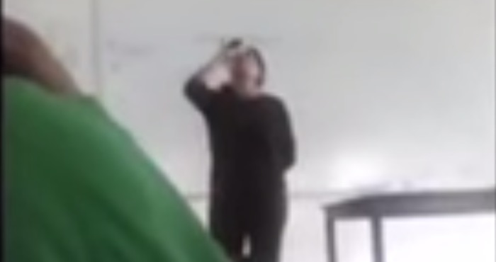 Ciudad de México, 19 de junio (SinEmbargo).– Una profesora del plantel del Colegio de Bachilleres del Estado de Puebla (Cobaep), Teresa Hernández Cruz, fue grabada con el celular de uno sus alumnos mientras bebía tequila dentro del salón de clases, lo que causó que fuera suspendida de manera indefinida.