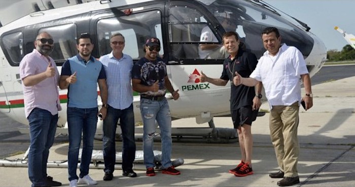 Ciudad de México, 23 de junio (SinEmbargo).– El ex pugilista Julio César Chávez paseó, junto a cinco personas más, en un helicóptero oficial de Petróleos Mexicanos (Pemex). Sobrevoló una plataforma petrolera en Campeche y estuvo acompañado por personal del sindicato petrolero que dirige el Senador priista Carlos Romero Deschamps, de acuerdo con fotografías dadas a conocer por el promotor José Alberto Gómez Millar y el presentador de box Jimmy Lennon Jr.