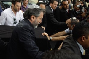 MÉXICO, D.F., 01JULIO2015.- Amigos y familiares de Jacobo Zabludovsky, le dieron el último adios al periodista en una ceremonia judia. Zabludovsky falleció la madrugada de hoy a causa de un derrame cerebral y fue sepultado alrededor de las 13:00 horas en el panteón isrraelita.