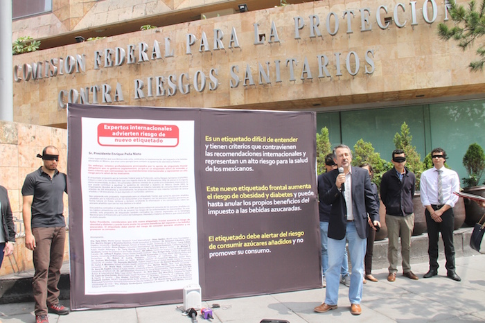 Ciudad de México, 3 de julio (SinEmbargo).- La Alianza por la Salud Alimentaria (ASA) expresó su rechazo a la entregada en vigor del nuevo etiquetado a los alimentos frente a las instalaciones de la Comisión Federal para la Protección contra Riesgos Sanitarios (Cofepris) de la Ciudad de México.