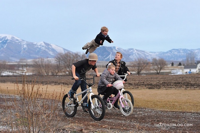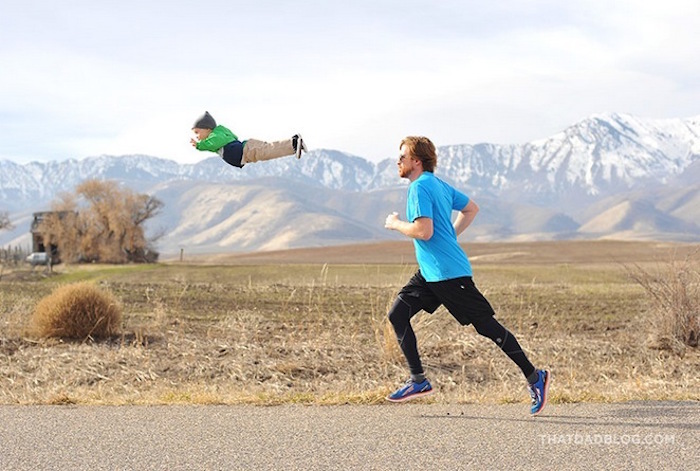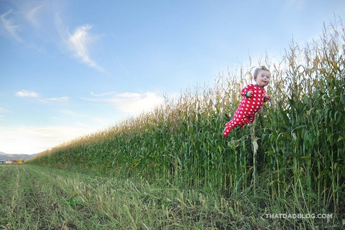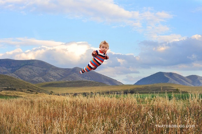 Alan, fotógrafo, empezó entonces a retratar a su hijo pequeño -ahora será el penúltimo, pues espera otro más-. Y un día le cogió en brazos, tomó la foto y más tarde, borrándose a sí mismo con Photoshop, le dio alas virtuales a su hijo y le colocó en las escenas más curiosas, volando, lanzando un mensaje evidente: todo es posible, en realidad, todo está a su alcance.