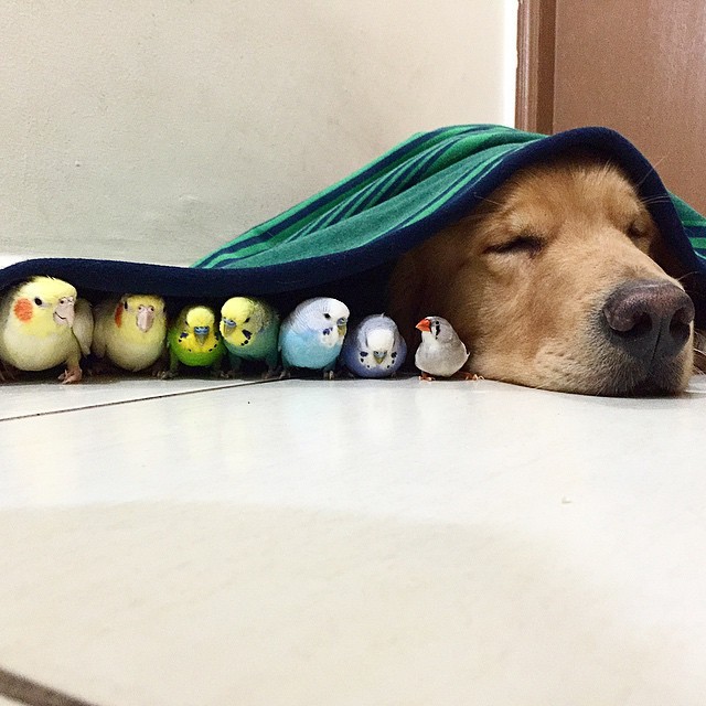 El perro Bob es un golden retriever que vive en Brasil y se relaja con múltiples pajaritos y un hámster pequeño y gordo. Hasta este miércoles, tiene más de 100,000 seguidores en Instagram y más de 24,000 likes en Facebook. Pero como cualquier celebridad, una estrella necesita un equipo, y el de Bob es uno serio. En sus fotos, aparecen al menos ocho pájaros, junto a un hámster gris y esponjado. Algunas son solo fotos de Bob y un ave acurrucados bajo una manta, otras muestran al hámster colgado de su nariz, pero las mejores fotos muestran a los 10 animales despatarrados en todo su esplendor. ¡Es demasiado!
