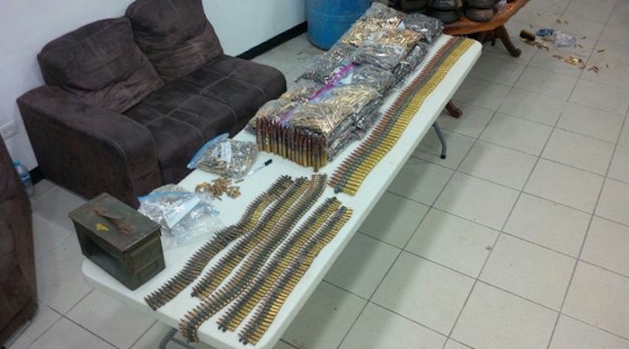 Por lo que respecta a los cartuchos se reportaron para fusil AK-47 (más de cinco mil 500) y para armas calibres 50, 30 y 22-250, así como calibre 7.62 x 39. En total seis mil 532 cartuchos.