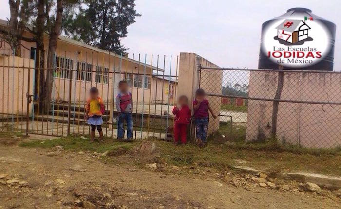 Aulas de madera o lámina, con goteras y piso de tierra; sin luz, bancas o agua, son las constantes que se denuncian en la red social. También lo es la exigencia de contar con drenaje o con mejores bancos o pizarrones.