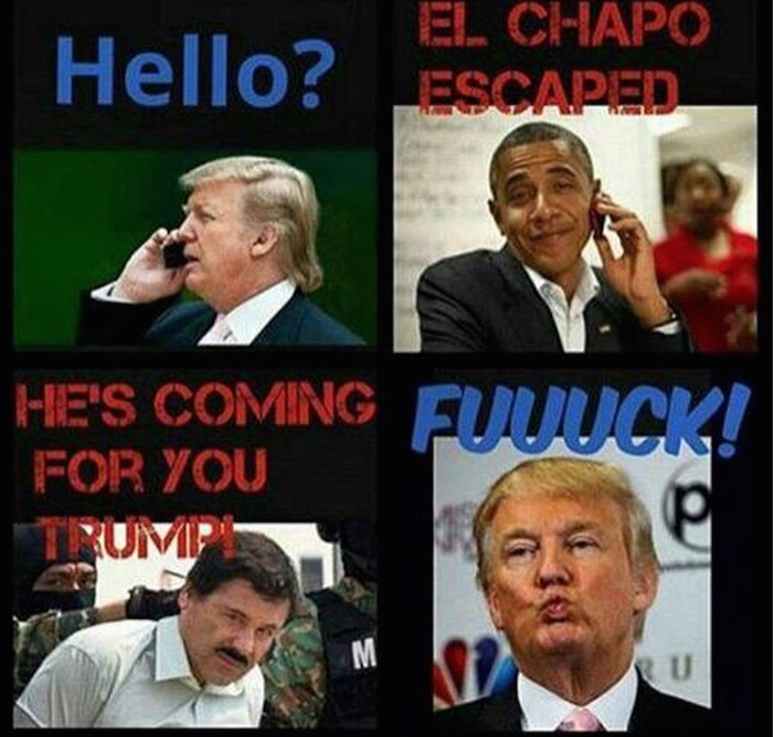 “El mayor señor de las drogas de México escapa de la cárcel. Corrupción increíble y EU está pagando el precio. ¡Se los dije!”, escribió Trump, quien compite por ser el representante del Partido Republicano en las elecciones presidenciales de noviembre de 2016.n