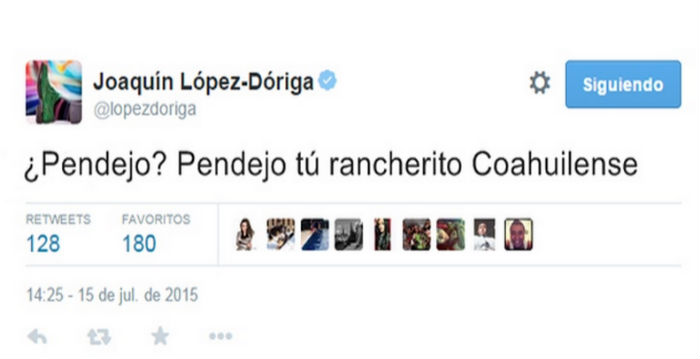 "¿Pendejo? pendejo tú rancherito Coahuilense" (sic), de acuerdo con el diario Vanguardia de Saltillo, el supuesto tuit fue eliminado minutos después de la cuenta del conductor de Televisa.