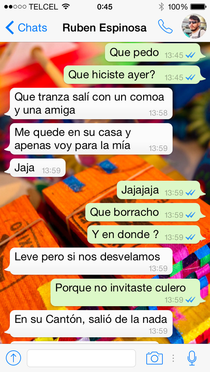 –Qué pedo. qué hiciste ayer –pregunta el amigo a las 13:45.