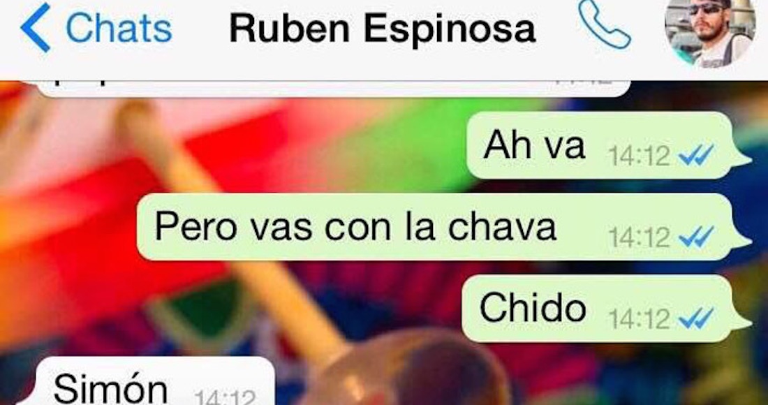 Ciudad de México, 6 de agosto (SinEmbargo).– Minutos antes de las dos de la tarde del pasado viernes 31 de julio, el fotoperiodista Rubén Espinosa Becerril, de 31 años, inició una conversación de WhatsApp con un amigo que se prolongó hasta las 14:13 horas de ese día.