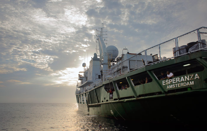 El Esperanza, que fue un barco ruso y desde hace algunos años, adaptado, sirve a los motivos de Greenpeace, alberga en estos días a este grupo que, en guardias distribuidas de día y de noche, hace pruebas. El investigador Ernesto García Mendoza es el coordinador del grupo. Lo acompañan otros jóvenes científicos, como David Alberto Rivas Camargo.