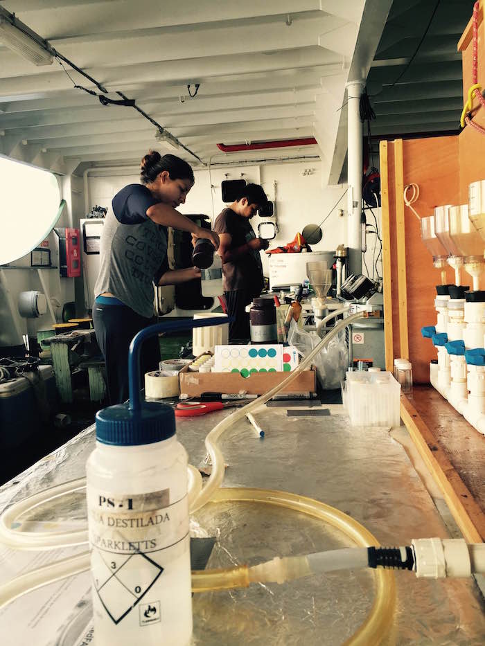 Desde el Esperanza, un grupo de científicos y estudiantes mexicanos levanta muestras y hace pruebas del agua de mar. Foto: Alejandro Páez Varela, SinEmbargo