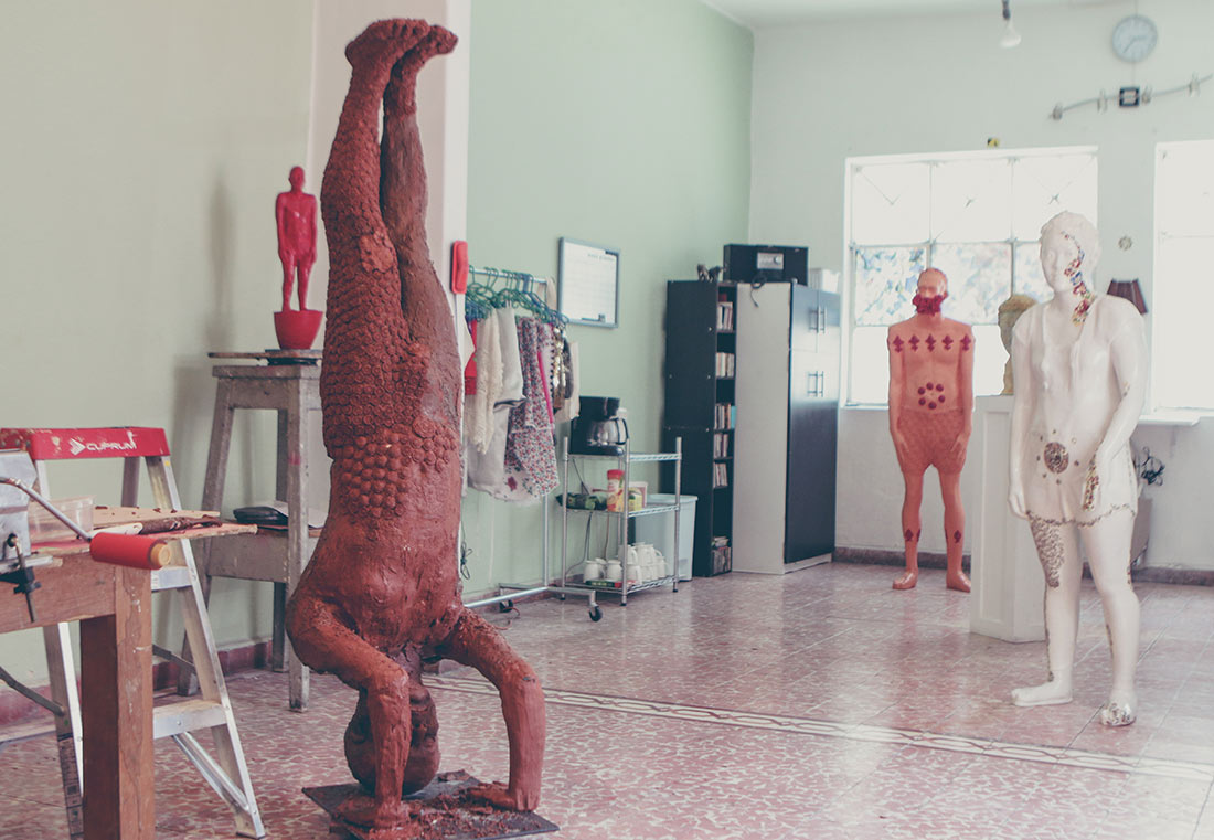 2.Yo quería un estudio que fuera en planta baja, con ambientes muy grandes, para albergar mis esculturas. Busqué por la Narvarte, por la Escandón, pero las rentas eran muy caras. Un día vi un anuncio, me monté a la bicicleta y vine a verlo. Me enamoré de mi estudio a primera vista. Creo que lo que pides se cumple y yo pedí que si compartía espacio que fuera con una pareja joven, con perro. Lo que no pedí es que tuvieran buena onda. Por suerte se fueron y ahora vive al lado mío una amiga pintora llamada Carmen Chávez.