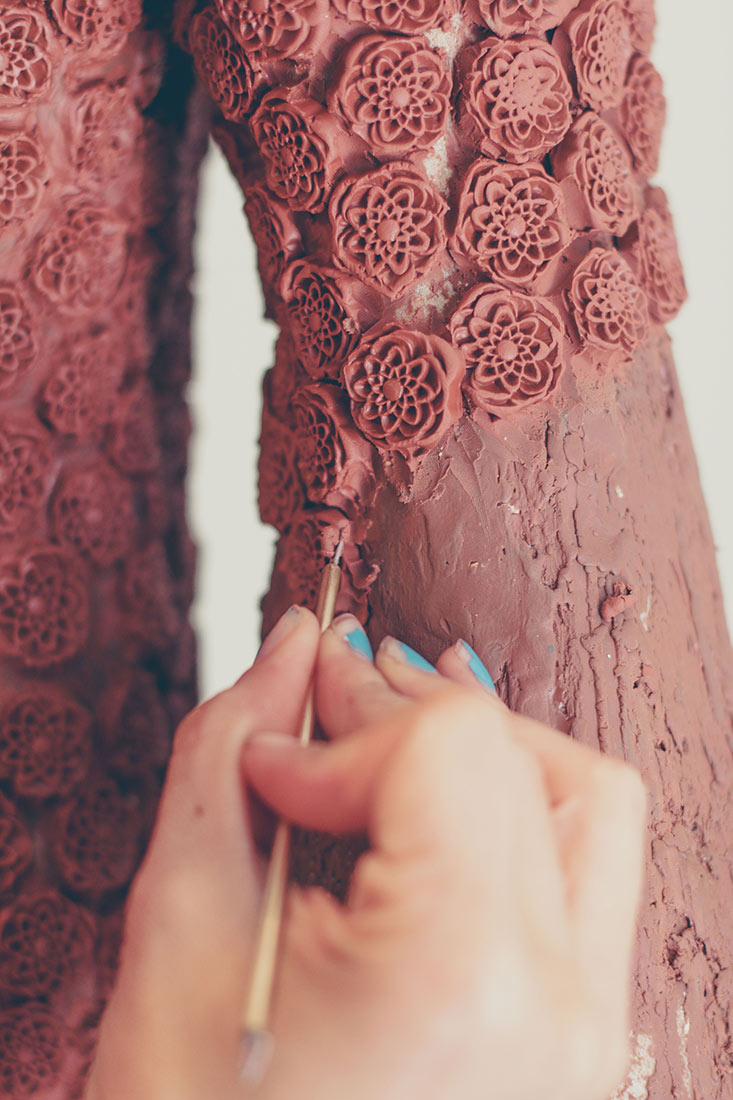 “El otro objeto de estudio se centra en la investigación, aplicación y manipulación delicada y algunas veces obsesiva de materiales que por sí solos conllevan una carga de protección y recubrimiento de algo interno.
