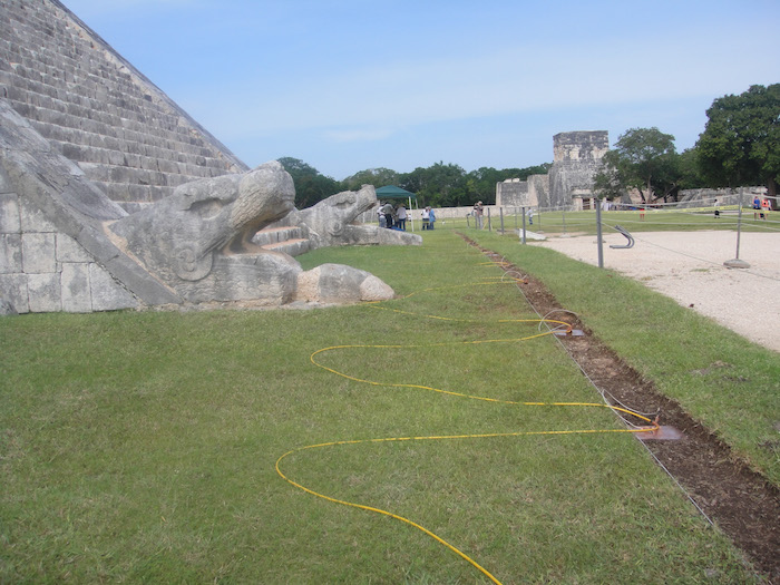 De esta manera se tuvo conocimiento del cuerpo de agua que se ubica de bajo de una parte de la pirámide El Castillo.