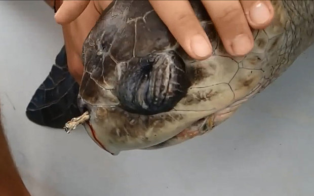 Ciudad de México, 14 de agosto (SinEmbargo).- Mientras realizaba un proyecto de investigación en Costa Rica, el biólogo marino británico Nathan J. Robinson, retira un popote de plástico [material no biodegradable] de 10 centímetros de largo, que se incrustó en su totalidad en la fosa nasal de una tortuga marina golfina.
