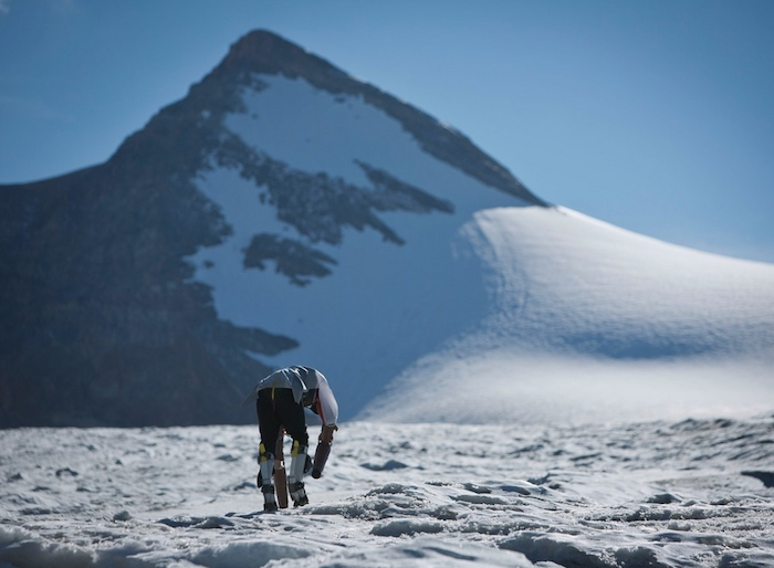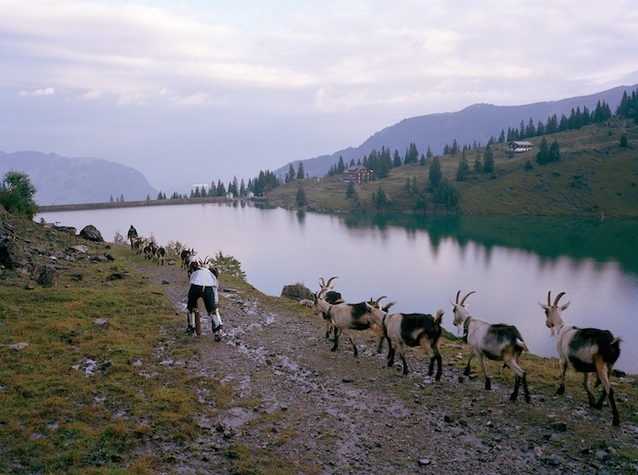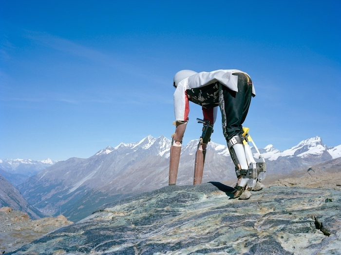 Se marcó el objetivo de cruzar los Alpes suizos y tuvo la suerte de encontrar un cabrero que le permitió vivir entre sus cabras en septiembre de 2014. Pero la vida de una cabra no es fácil, y mucho menos lo es moverse por el terreno rocoso y resbaladizo de esa región helvética. Thwaites ni siquiera tuvo tiempo de habituarse a llevar las prótesis, que añadían un peso considerable a sus brazos cuando iba pendiente abajo. Los rigores del tiempo no permitían a Thwaites dormir al raso con las cabras, por lo que él y su equipo montaban un campamento todas las noches. Luego, claro, estaba el problema de convencer a las cabras de que ese hombre de aspecto raro con prótesis en las extremidades y casco era uno más de la familia.