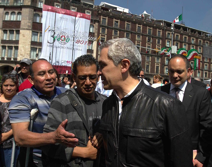 50919161. México, 19 Sep. 2015 (Notimex- José Pazos).- para conmemorar los 30 años de los sismos de 1985, a las 11:30 horas se activó la alerta sísmica en la ciudad de México, con lo que inició el Simulacro Nacional en el que participan diversas dependencias e instancias de gobiernos locales y federales. En la imagen el jefe de Gobierno, Miguel Ángel Mancera
