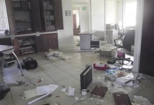 CHILPANCINGO, GUERRERO, 21SEPTIMBRE2015.- Padres de familia y normalistas destruyeron mobiliario de la Fiscalía General del estado, quemaron algunos documentos en la caseta de vigilancia de la dependencia y posteriormente se dirigieron al norte de la ciudad. Los padres de familia solicitaron cooperación voluntaria de los automovilistas; los normalistas retuvieron automoviles oficiales en el punto conocido como Tierras Prietas, exigiendo la presentación con vida de los 43 estudiantes desaparecidos en Iguala.