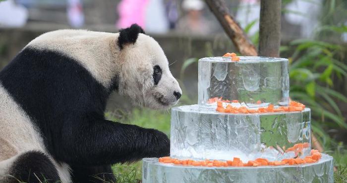 - «Feliz cumpleaños, feliz cumpleaños», cantaron admiradores y personal del Centro de Conservación e Investigación del Panda Gigante de China a Pan Pan, cuya edad equivale a la de un humano de unos 100 años. Foto: Xinhua