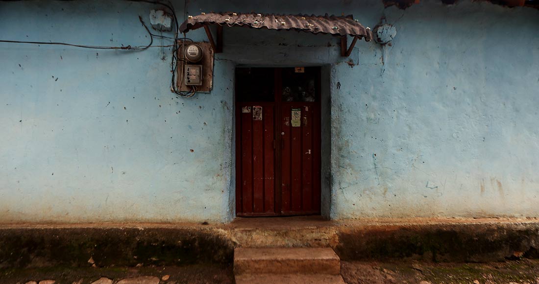 La vivienda de los padres de Joshivani es la única casa pintada de azul del rumbo y está ubicada casi en frente de la casa de Isabel.