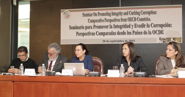 El Seminario fue organizado por la Comisión de Gobernación del Senado y tuvo el propósito de compartir buenas prácticas de los países miembro de la OCDE para hacer el diseño institucional, para combatir la corrupción en México.