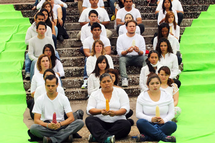 “Antes que nada agradeciendo al espíritu del maíz por alimentar a nuestros padres, abuelos, a los padres de nuestros abuelos, y así deseamos que siga alimentando a nuestros hijos, nietos, y a los hijos de nuestros nietos”, dijo al inicio de su discurso, y luego alertó de lo que pasaría si se siembra maíz transgénico, que de acuerdo con la Unión de Científicos Comprometidos con la Sociedad no puede coexistir con el orgánico, ya que el polen viaja largas distancias que contaminan los sembradíos.