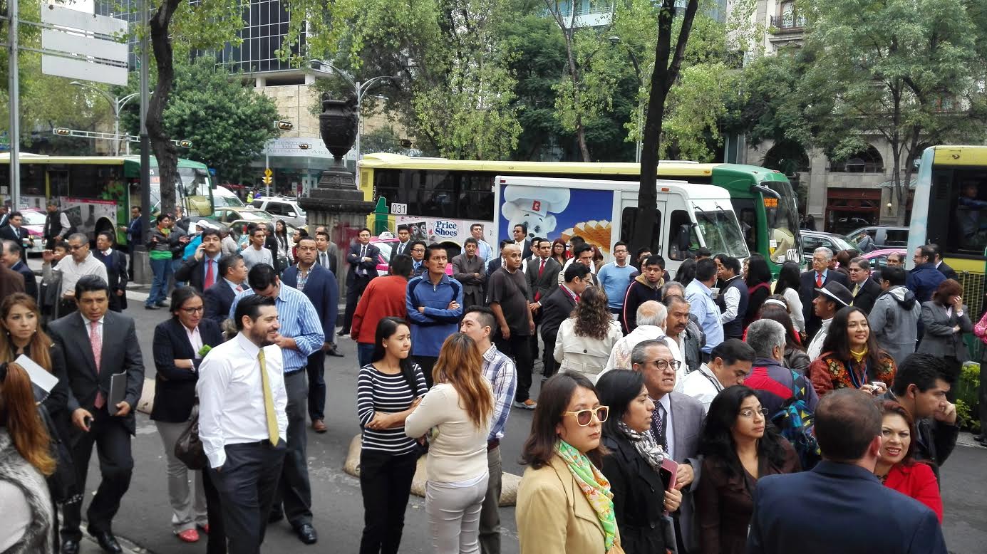 - Personas permanecieron unos minutos a las afueras del Senado tras la activación de la Alerta Sísmica. Foto: Luis Barrón/SinEmabargo
