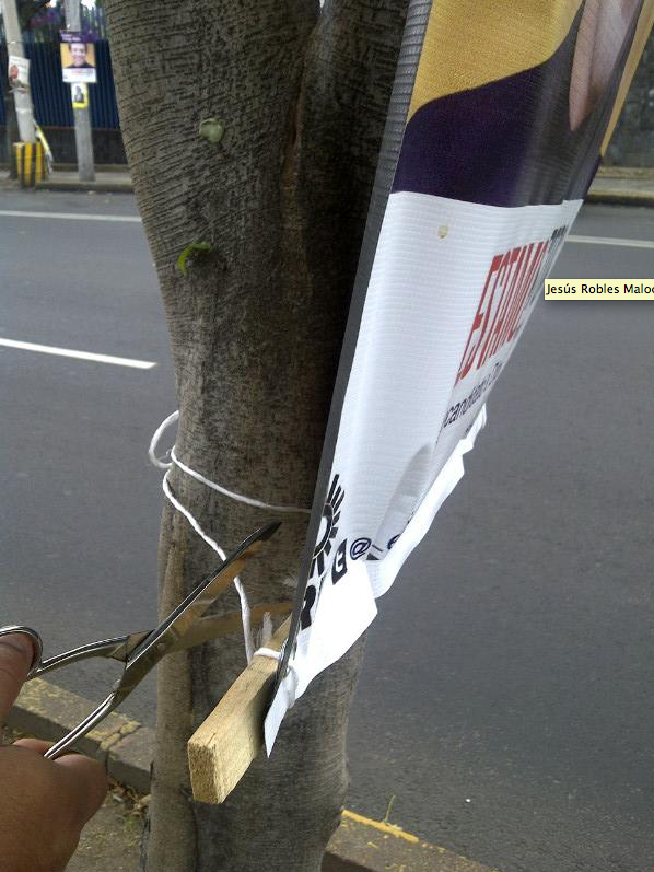 El activista Jesús Robles Maloof ha propuesto desde su blog (Roblesmaloof's Blog) una campaña para que los ciudadanos de todo el país adopten una calle y retiren la propaganda electoral que está colocada en sitios que la propia ley prohíbe. Con la autorización de Robles Maloof y por ser un asunto de interés social, reproducimos su convocatoria, a la que se han unido de manera espontánea decenas de usuarios de Twitter y Facebook: