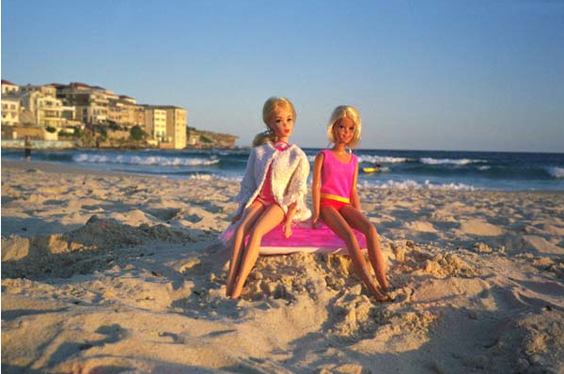 Boogy days, así Greg tituló estas imágenes, las cuales formaron parte de una popular exhibición de la muñeca Barbie y sus amigos en la famosa playa Bondi en Sydney, Australia.