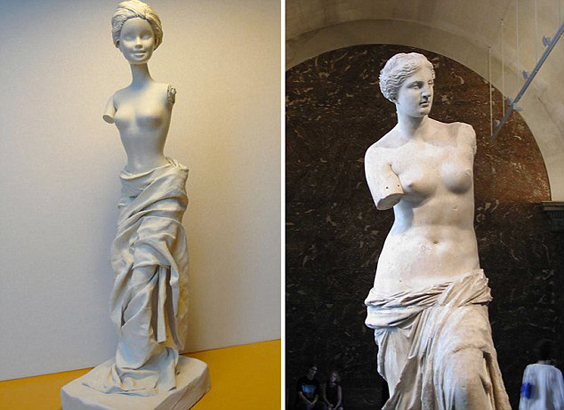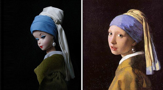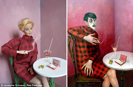 La artista francesa Jocelyne Grivaud rinde tributo a Barbie y la convierte en protagonista de famosas pinturas, fotografías, esculturas y hasta fotogramas de alguna película. Todo comenzó, dice, en Noviembre de 1967, cuando su madre le obsequió “una prenda rosa, vaporosa y extremadamente delicada” que confeccionó para su Barbie. “Podía haber cientos de opciones de prendas para la muñeca, pero la que hizo para mí era incomparable, para mi Barbie, era incomparable. Entonces crecí. La muñeca desapareció, pero mantuve en mi mente aquella elegante y agraciada Barbie. Y un día, pensé que la idea de extender una feliz etapa de mi infancia podía ser a través de estas imágenes. Barbie es frecuentemente criticada por ser muy rubia, muy superficial, muy delgada, un ideal de marketing, tan esto, tan el otro… Así que mi propósito fue solo adaptar a esta famosa figura con diferentes representaciones emblemáticas en el arte. Esta es mi pequeña contribución”.