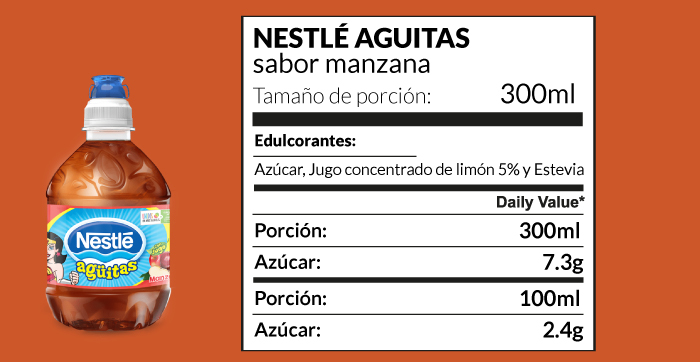 “Los sustitutos de azúcar [de estas agüitas infantiles] no se reflejan en el etiquetado. Sólo los azúcares totales, en el cual están incluidos los azúcares añadidos que los componen, el azúcar refinada o el jarabe de maíz. Por ejemplo, el stevia no es un azúcar, por ende, no está en el etiquetado. Entonces, sí es una forma de engañar sobre el contenido del azúcar”, dijo.