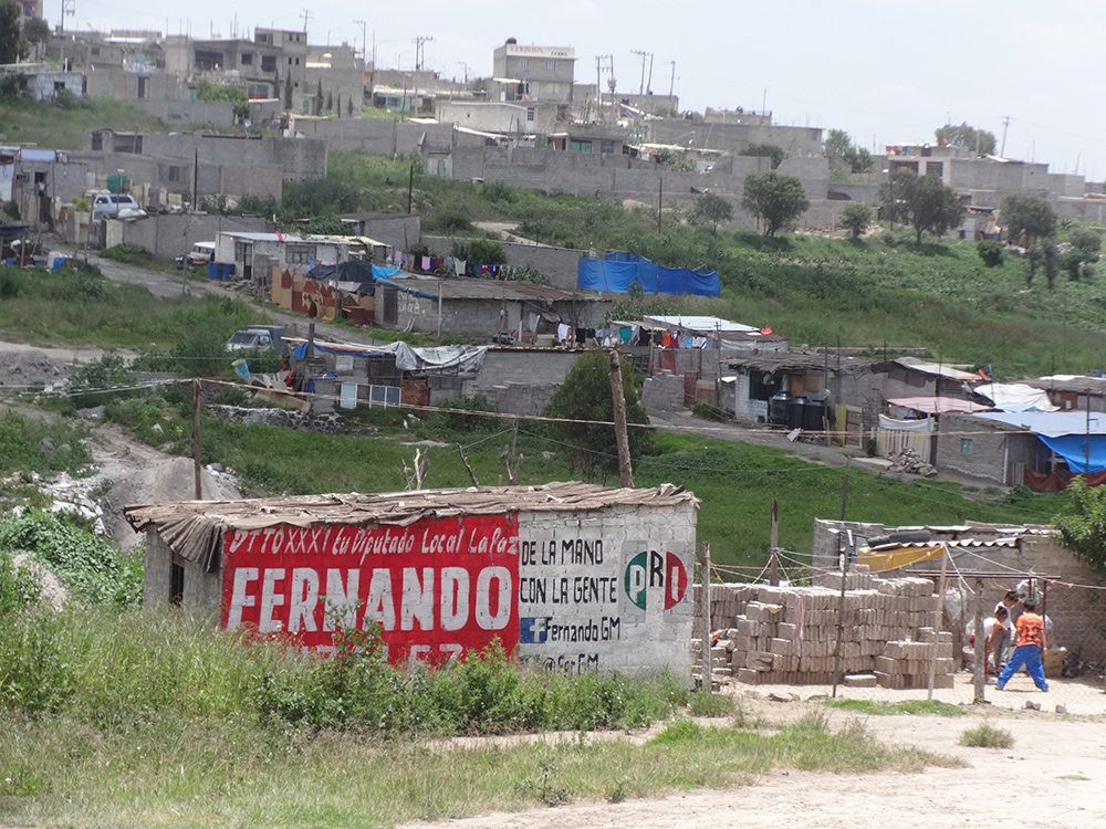 Algunos de los cerros forrados con casas de tabique grises que se observan en la salida a Puebla son porciones de La Paz y Chimalhuacán, territorio Antorcha. No existe agua potable, ni alcantarillado, ni seguridad pública, ni calles pavimentadas, ni escuelas con baños dignos, ni alumbrado, ni nada que haga pensar en que esta es parte de la capital de un país cuyos gobernantes siempre presentan a México como una de las mayores economías del mundo.