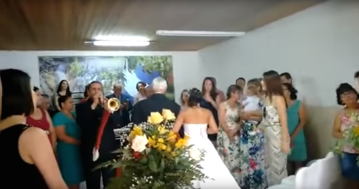 Ciudad de México, 20 de noviembre (SinEmbargo).– Un video publicado en YouTube por un usuario identificado como Moises Victor muestra el momento en el que un trompetista desafinado arruina la marcha nupcial de una boda en Sao Paulo, Brasil.
