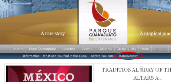 SinEmbargo.mx encontró que en la versión en inglés de la página citada sí es posible localizar la información solicitada. En el menú principal existe la opción “Expo Bicentenario” y ahí se localiza la sección “transparency”. Llama la atención que las secciones que se despliegan de dicha opción coinciden plenamente, en cuanto a la información que ofrecen, con las que aparecen en el acceso “Expo Guanajuato” del menú principal de la página en su versión en español, sólo que en ésta no existe la sección “transparencia”.
